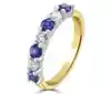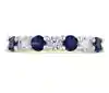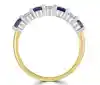 A timeless 18ct yellow gold seven gemstone eternity ring, featuring a sophisticated platinum head. This exquisite ring showcases a balanced design with alternating four round sapphires and three round brilliant cut diamonds, creating a harmonious interplay of colour and sparkle. The sapphires, totalling 0.75 carats, radiate a deep, vibrant blue, beautifully contrasted by the diamonds, which collectively weigh 0.37 carats, and emit a dazzling brilliance.