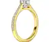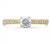 An 18ct yellow gold ring featuring a stunning 0.50ct round brilliant-cut diamond at its heart, meticulously set in four claws to ensure both security and maximum light exposure. The centre diamond boasts an impressive F colour and SI1 clarity, ensuring a dazzling display of sparkle and fire. Complementing the central diamond, each shoulder of the ring is adorned with 12 graduated round brilliant-cut diamonds. These additional diamonds seamlessly transition in size, enhancing the ring's elegance and adding to its overall brilliance. The thoughtful placement of these diamonds creates a captivating effect, drawing the eye towards the centre. This solitaire ring with graduated diamond shoulders is an emblem of sophistication and timeless beauty. It's the perfect choice for those seeking a ring that balances classic elegance with a touch of contemporary flair.