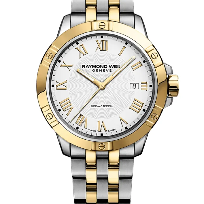 The tango collection embodies the passion that RAYMOND WEIL, the Swiss watchmaker, puts into achieving timepieces of both aesthetic sensuality of design and rhythmic perfection. With its refined and modern design, this contemporary collection appeals to both men and women. Featuring a quartz movement, the gents’ timepieces boast a sober and refined style while the ladies’ models are graced with mother of pearl and diamonds. Distinctive style with a balance of proportions, the tango watch has a distinguishing signature bezel featuring six decorative screws. Functionality marries with sensual design, making this a watch worn to suit any occasion.
