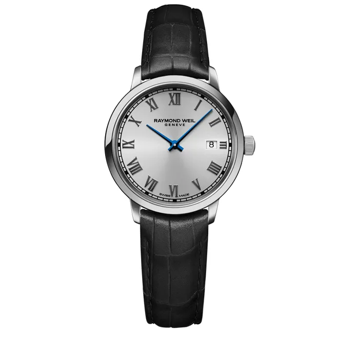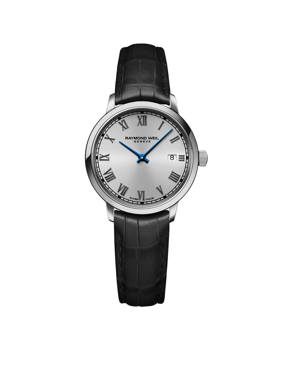 Equipped with a quartz movement, this toccata ladies’ watch features a stainless steel 29 mm case and a date window at 3 o’clock. The silver lacquered and sunray satin-finished dial is set with applied Roman numeral indexes and has a railway-track chapter ring that aids readability. To complement this modern classic, alligator motifs have been added on the strap. Refined design and timeless materials: the toccata collection celebrates the artistic and musical spirit behind the Brand’s DNA. Following in the footsteps of the great composers, toccata promotes the Swiss horology of RAYMOND WEIL while respecting the tradition and heritage handed down from generation to generation within the family company.