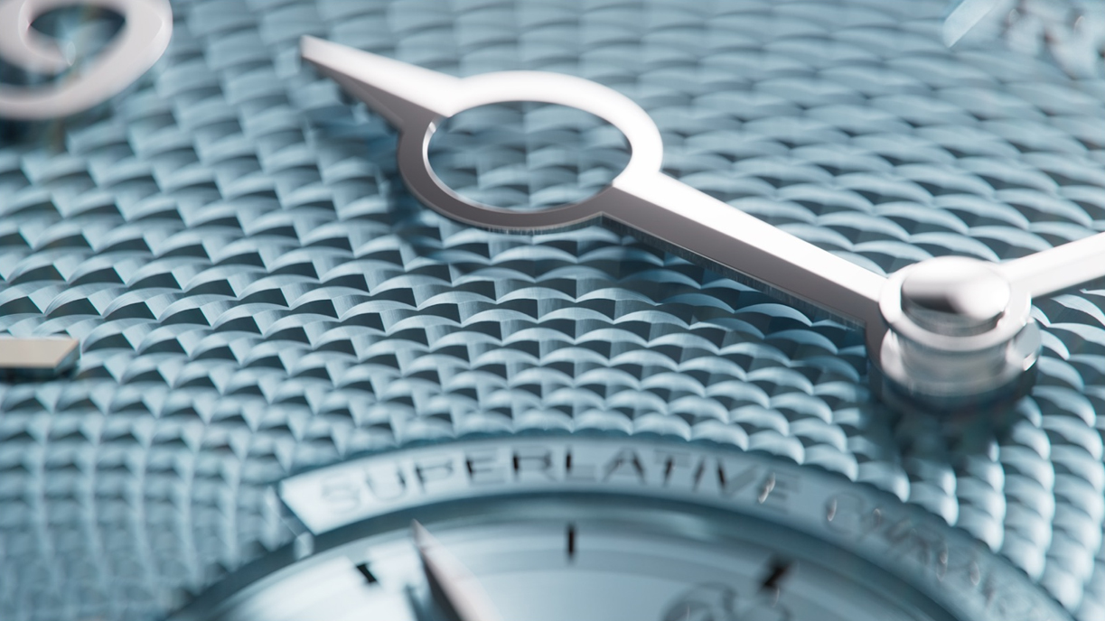 Rolex is presenting a new version of the Perpetual 1908 decked in 950 platinum and graced with an ice blue dial featuring a guilloché rice-grain motif.