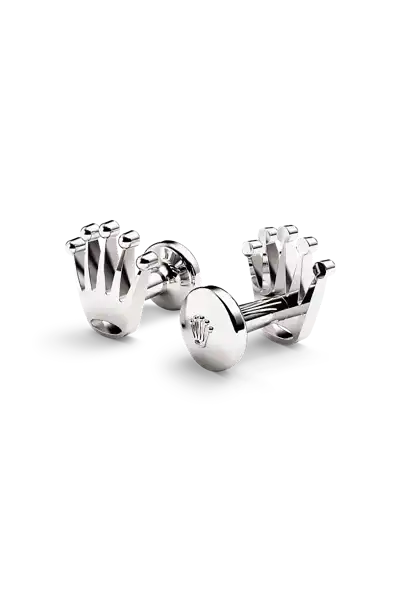 Rolex cufflinks made of 18 ct white gold and shaped in the form of the signature Rolex crown.