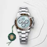 Rare and precious, platinum is striking for its silvery whiteness and vibrant luminosity. It is among the densest and heaviest metals in the world, distinguished by unique chemical and physical properties such as exceptional corrosion resistance. Paradoxically, it is also soft, elastic and highly malleable, which makes machining and polishing especially difficult, demanding an extremely high degree of skill. Rolex always uses 950 platinum, an alloy consisting of 950‰ (thousandths) platinum, painstakingly crafted in-house by the fine metalworkers at Rolex. The noblest of metals for the finest of watches.