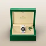 The five-year guarantee which applies to all Rolex models is coupled with the green seal, a symbol of its status as a Superlative Chronometer. This exclusive designation attests that the watch has successfully undergone a series of specific final controls by Rolex in its own laboratories according to its own criteria, in addition to the official COSC certification of its movement.