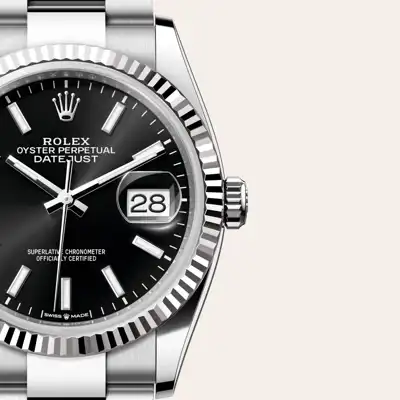 The Rolex fluted bezel is a mark of distinction. Originally, the fluting of the Oyster bezel had a functional purpose: it served to screw the bezel onto the case helping to ensure the waterproofness of the watch. It was therefore identical to the fluting on the case back, which was also screwed onto the case for waterproofness, using specific Rolex tools. Over time, the fluting became an aesthetic element, a genuine Rolex signature feature. Today the fluted bezel is a mark of distinction, in gold on this Datejust 36.