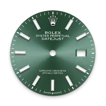The sunray finish creates delicate light reflections on many dials in the Oyster Perpetual collection. It is obtained using masterful brushing techniques that create grooves running outwards from the centre of the dial. Light is diffused consistently along each engraving, creating a characteristic subtle glow that moves depending on the position of the wrist. Once the sunray finish has been completed, the dial colour is applied using Physical Vapour Deposition or electroplating. A light coat of varnish gives the dial its final look.