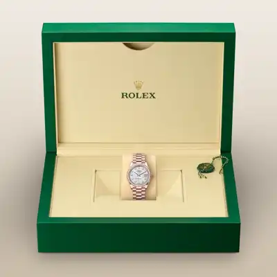 Every Rolex is delivered in a beautiful green presentation box that is both protector and keeper of the jewel that nests inside it. As the presentation box is also a symbol of giving, it is important, if you are purchasing a gift, that the recipient’s first contact with their Rolex sets the stage for revealing what lies within.