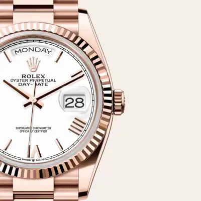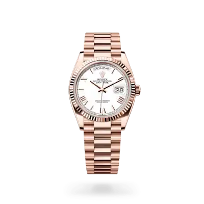 The Rolex fluted bezel is a mark of distinction. Originally, the fluting of the Oyster bezel had a functional purpose: it served to screw the bezel onto the case helping to ensure the waterproofness of the watch. It was therefore identical to the fluting on the case back, which was also screwed onto the case for waterproofness, using specific Rolex tools. Over time, the fluting became an aesthetic element, a genuine Rolex signature feature. Today the fluted bezel is a mark of distinction, in gold on this Day-Date 36.