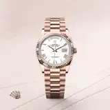 To preserve the beauty of its pink gold watches, Rolex created and patented an exclusive 18 ct pink gold alloy cast in its own foundry: Everose gold. Introduced in 2005, 18 ct Everose is used on all Rolex Oyster models in pink gold.