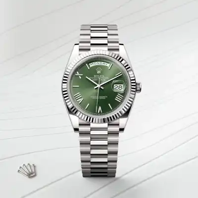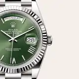 The Rolex fluted bezel is a mark of distinction. Originally, the fluting of the Oyster bezel had a functional purpose: it served to screw the bezel onto the case helping to ensure the waterproofness of the watch. It was therefore identical to the fluting on the case back, which was also screwed onto the case for waterproofness, using specific Rolex tools. Over time, the fluting became an aesthetic element, a genuine Rolex signature feature. Today the fluted bezel is a mark of distinction, in gold on this Day-Date 40.