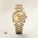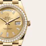 Gem-setters, like sculptors, finely carve the precious metal to hand-shape the seat in which each gemstone will be perfectly lodged. With the art and craft of a jeweller, the stone is placed and meticulously aligned with the others, then firmly secured in its gold or platinum setting. Besides the intrinsic quality of the stones, several other criteria contribute to the beauty of Rolex gem-setting: the precise alignment of the height of the gems, their orientation and position, the regularity, strength and proportions of the setting as well as the intricate finishing of the metalwork. A sparkling symphony to enhance the watch and enchant the wearer.