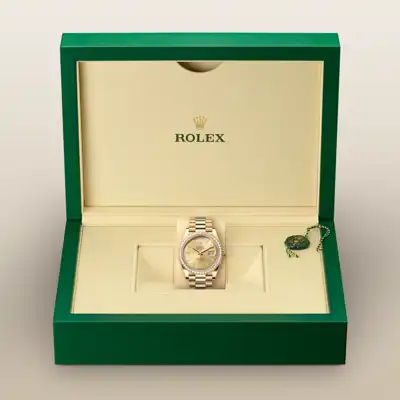 Every Rolex is delivered in a beautiful green presentation box that is both protector and keeper of the jewel that nests inside it. As the presentation box is also a symbol of giving, it is important, if you are purchasing a gift, that the recipient’s first contact with their Rolex sets the stage for revealing what lies within.