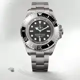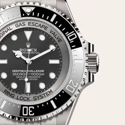 The 60-minute graduated, unidirectional rotatable bezel of the Deepsea Challenge enables divers to precisely and safely monitor their dive and decompression times. It is equipped with a patented black Cerachrom bezel insert manufactured by Rolex in a virtually scratchproof ceramic whose colour is unaffected by ultraviolet rays. The graduation is coated via PVD (Physical Vapour Deposition) with a thin layer of platinum. The dial features large Chromalight hour markers and hands, filled with luminescent material that emits a long-lasting blue glow for excellent legibility in dark conditions.