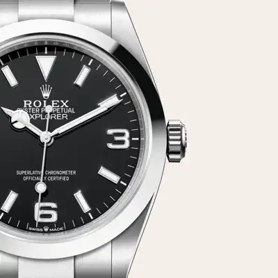 The Oyster Perpetual Explorer 40 imparts a fresh elan to the sober, clean lines that have long established it as an icon. The smooth bezel in Oystersteel is robust yet elegant, and in perfect harmony with the Explorer’s iconic heritage.