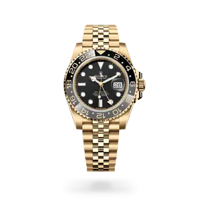 This model features a black dial and a two-colour Cerachrom bezel insert in grey and black ceramic. In addition to conventional hour, minute and seconds hands, the GMT-Master II features an arrow-tipped hand, which circles the dial once every 24 hours, as well as a bidirectional rotatable 24-hour graduated bezel. The distinctively coloured 24-hour hand displays the “home” reference time in a first time zone which can be read on the graduations on the bezel. The traveller’s local time is easily set by “jumping” from hour to hour, thanks to an ingenious mechanism operated via the winding crown: the hour hand can be adjusted forwards or backwards independently of the minute and seconds hands. This allows travellers to adapt to their new time zone without affecting the precision of their timekeeping.