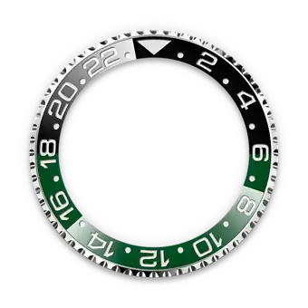Bidirectional rotatable 24-hour graduated bezel. Two-colour green and black Cerachrom insert in ceramic, moulded numerals and graduations