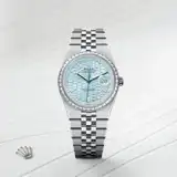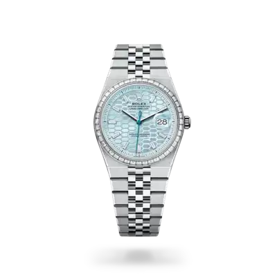 Rare and precious, platinum is striking for its silvery whiteness and vibrant luminosity. It is among the densest and heaviest metals in the world, distinguished by unique chemical and physical properties such as exceptional corrosion resistance. Paradoxically, it is also soft, elastic and highly malleable, which makes machining and polishing especially difficult, demanding an extremely high degree of skill. Rolex always uses 950 platinum, an alloy consisting of 950‰ (thousandths) platinum, painstakingly crafted in-house by the fine metalworkers at Rolex. The noblest of metals for the finest of watches.