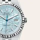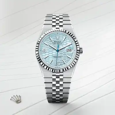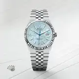 Rare and precious, platinum is striking for its silvery whiteness and vibrant luminosity. It is among the densest and heaviest metals in the world, distinguished by unique chemical and physical properties such as exceptional corrosion resistance. Paradoxically, it is also soft, elastic and highly malleable, which makes machining and polishing especially difficult, demanding an extremely high degree of skill. Rolex always uses 950 platinum, an alloy consisting of 950‰ (thousandths) platinum, painstakingly crafted in-house by the fine metalworkers at Rolex. The noblest of metals for the finest of watches.
