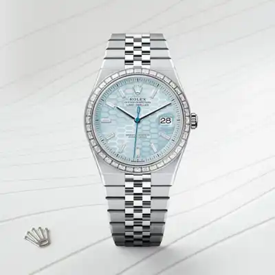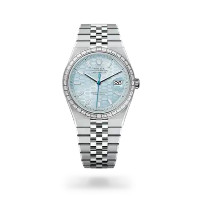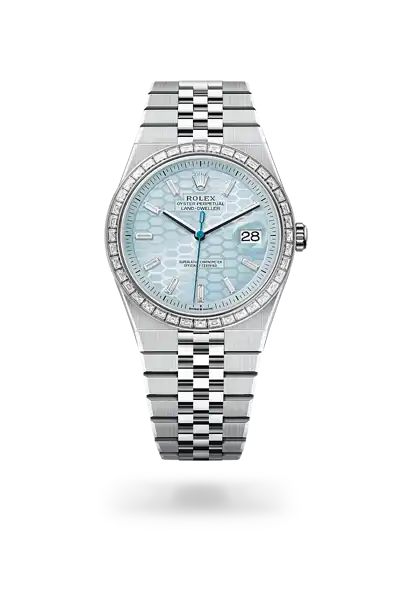 Rare and precious, platinum is striking for its silvery whiteness and vibrant luminosity. It is among the densest and heaviest metals in the world, distinguished by unique chemical and physical properties such as exceptional corrosion resistance. Paradoxically, it is also soft, elastic and highly malleable, which makes machining and polishing especially difficult, demanding an extremely high degree of skill. Rolex always uses 950 platinum, an alloy consisting of 950‰ (thousandths) platinum, painstakingly crafted in-house by the fine metalworkers at Rolex. The noblest of metals for the finest of watches.