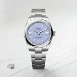 The Oyster bracelet is a perfect alchemy of form and function, aesthetics and technology. First introduced in the late 1930s, this particularly robust and comfortable metal bracelet with its broad, flat three-piece links remains the most universal bracelet in the Oyster collection. For the Oyster Perpetual models the Oyster bracelet is fitted with an Oysterclasp.