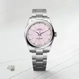 The Oyster bracelet is a perfect alchemy of form and function, aesthetics and technology. First introduced in the late 1930s, this particularly robust and comfortable metal bracelet with its broad, flat three-piece links remains the most universal bracelet in the Oyster collection. For the Oyster Perpetual models the Oyster bracelet is fitted with an Oysterclasp.
