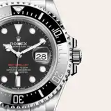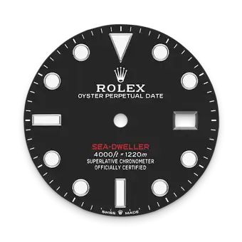 The black dial of the Sea-Dweller has the large hands and indices reserved for Rolex professional models. The dial bears the name Sea-Dweller in red, a reference to the first model. The innovative Chromalight display on the dial pushes back the boundaries of visibility in dark environments. Its distinctive blue glow lasts up to eight hours with a uniform luminosity, practically twice as long as that of standard luminescent materials.