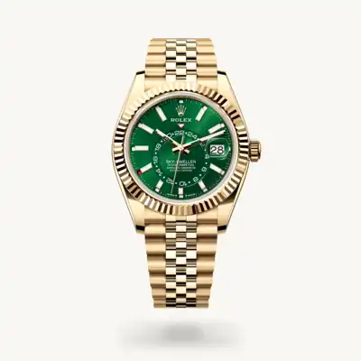 The Rolex fluted bezel is a mark of distinction. Originally, the fluting of the Oyster bezel had a functional purpose: it served to screw the bezel onto the case, helping to ensure the waterproofness of the watch. It was therefore identical to the fluting on the case back, which was also screwed onto the case for waterproofness, using specific Rolex tools. Over time, the fluting became an aesthetic element, a genuine Rolex signature feature. Today the fluted bezel is a mark of distinction, always in gold. The Sky-Dweller is equipped with a mechanism of interaction between the rotatable bezel, the winding crown and the movement: the Ring Command system, which allows the user to select the watch's functions one-by-one and to set them easily, quickly and securely.