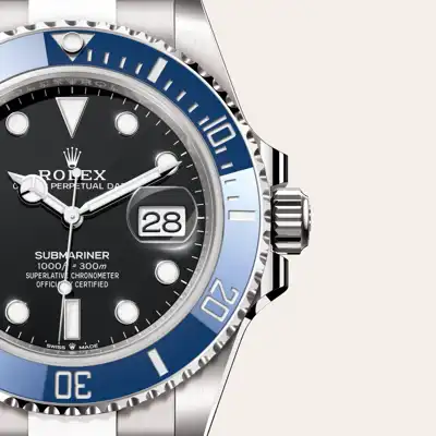 The Submariner's rotatable bezel is a key functionality of the watch. Its 60-minute graduations allow a diver to accurately and safely monitor diving time and decompression stops. Manufactured by Rolex from a hard, corrosion-resistant ceramic, the Cerachrom bezel insert is virtually scratchproof. A luminescent capsule on the zero marker ensures legibility, no matter how dark the environment. The bezel’s knurled edge is carefully designed to offer excellent grip under water, even with gloves.
