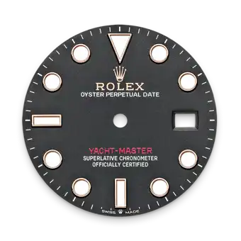 The Yacht-Master’s bidirectional rotatable 60-minute graduated bezel is made entirely from precious metals or fitted with a Cerachrom insert in high-tech ceramic. The raised polished numerals and graduations stand out clearly against a matt, sand-blasted background. This functional bezel – which allows the wearer to calculate, for example, the sailing time between two buoys – is also a key component in the model’s distinctive visual identity.