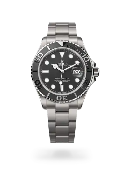 The Yacht-Master’s bidirectional rotatable 60-minute graduated bezel is made entirely from precious metals or fitted with a Cerachrom insert in high-tech ceramic. The raised polished numerals and graduations stand out clearly against a matt, sand-blasted background. This functional bezel – which allows the wearer to calculate, for example, the sailing time between two buoys – is also a key component in the model’s distinctive visual identity.