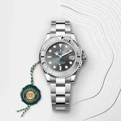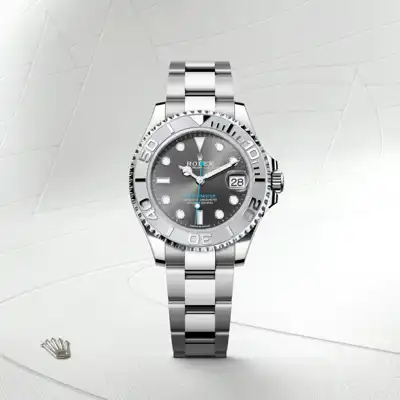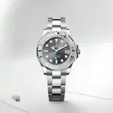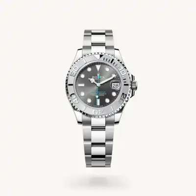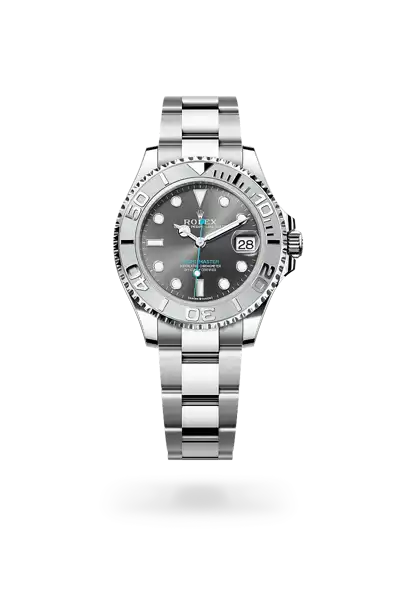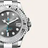 Many Rolex watches are available with the now-legendary combination of yellow, white or Everose gold and steel known as Rolesor, but Rolesium is a creation specific to the Yacht-Master. While the case and bracelet are in rugged Oystersteel, the bezel of the Rolesium versions is made of platinum, imparting a silvery whiteness and vibrant luminosity for an unmistakable sense of luxury.