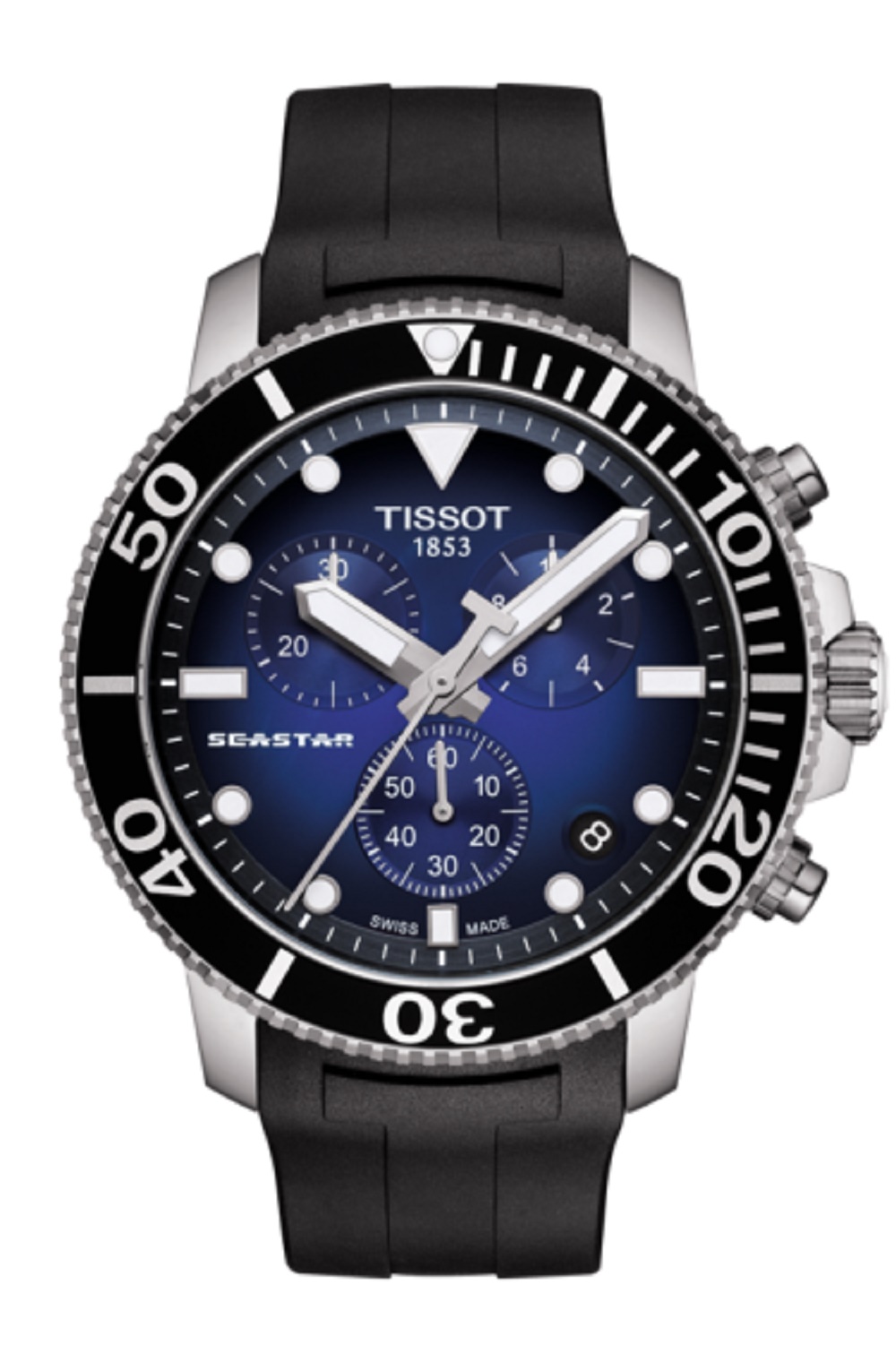 The Tissot Seastar 1000 is the ultimate watersport watch, with its high water-resistance up to a pressure of 30 bar (300 m/1000 ft), screw-down crown and caseback as well as its unidirectional ceramic bezel.