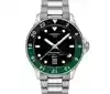 Combining all the elements you would expect in a sports watch, this model is a timepiece you can rely on – on, in or under the water. Impressive water-resistance up to a pressure of 30 bar (300m/1000 ft) is combined with the energy of a Swiss Made quartz movement. With a screw-down crown and case back and Superluminova ® ensuring it is readable in the dark, the Seastar 1000 Quartz GMT is an aquatic ace that truly has it all. The screw-down crown also offers additional protection against knocks. Discover this new diver’s watch, featuring a stainless steel bracelet, a bi-colour black and green bezel, a deep black dial and contrasting white hands and indexes.