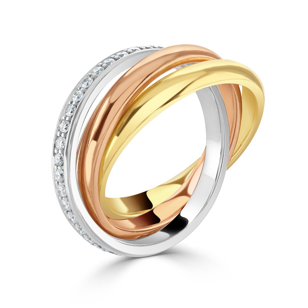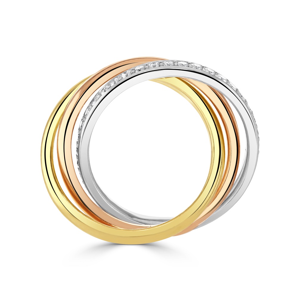 18ct Yellow, White and Rose Gold Diamond Trilogy Wedding Ring