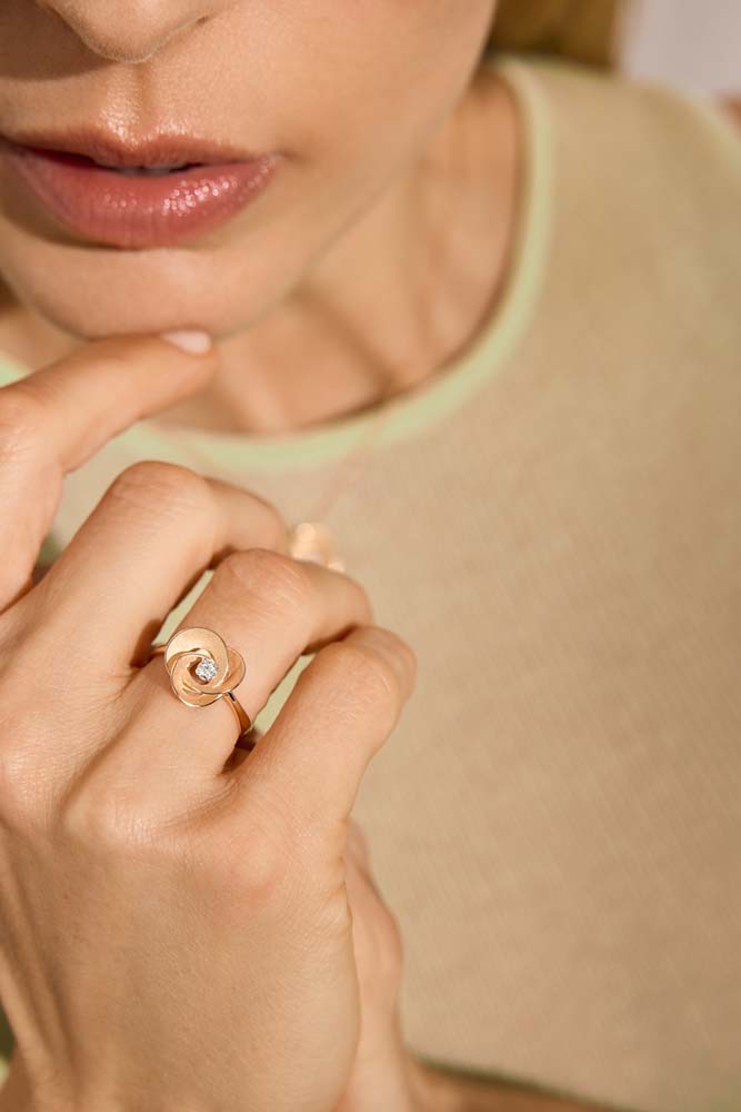 The thin gold ribbons of Essential intertwine in a playful spiral, creating harmonious rounded forms that resemble a stylised flower. Desert Rose encapsulates all the simplicity of the Dune collection, combined with the charm of a delicate flower. A collection with a vibrant and discreet design, for those who want to add a touch of style to their everyday look.