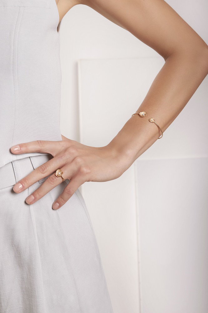 The thin gold ribbons of Essential intertwine in a playful spiral, creating harmonious rounded forms that resemble a stylised flower. Desert Rose encapsulates all the simplicity of the Dune collection, combined with the charm of a delicate flower. A collection with a vibrant and discreet design, for those who want to add a touch of style to their everyday look.