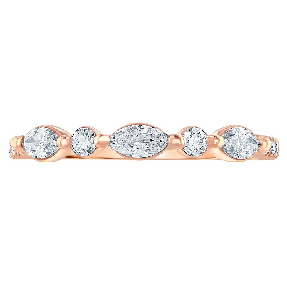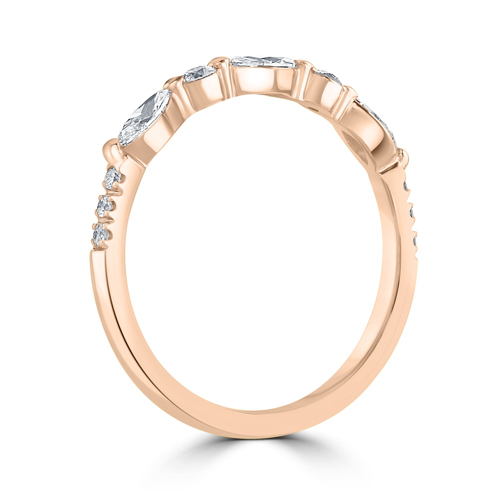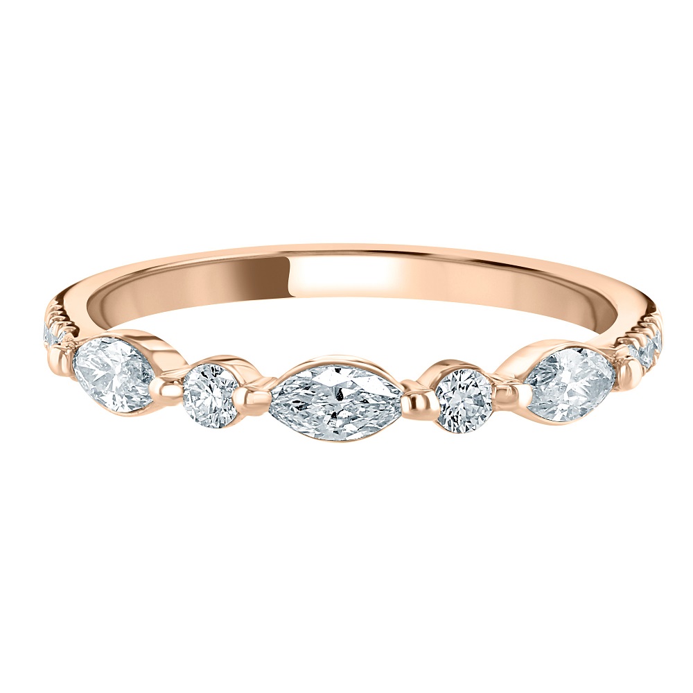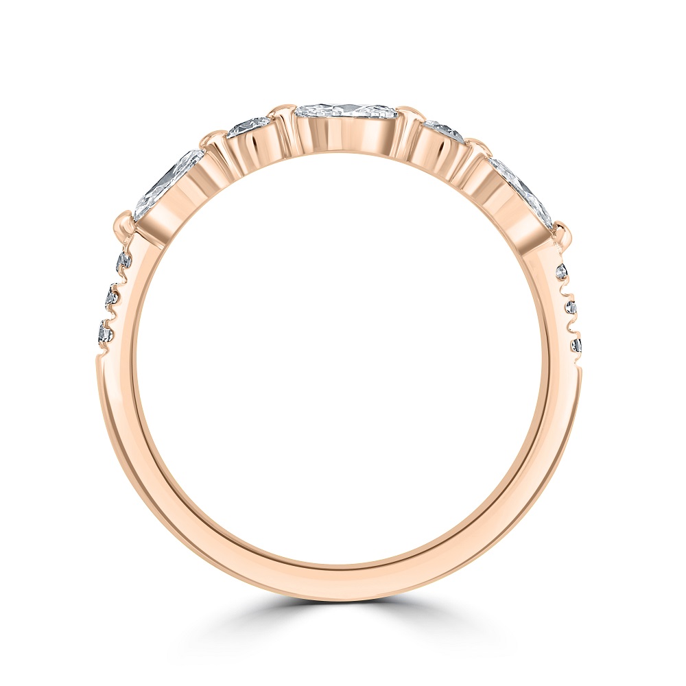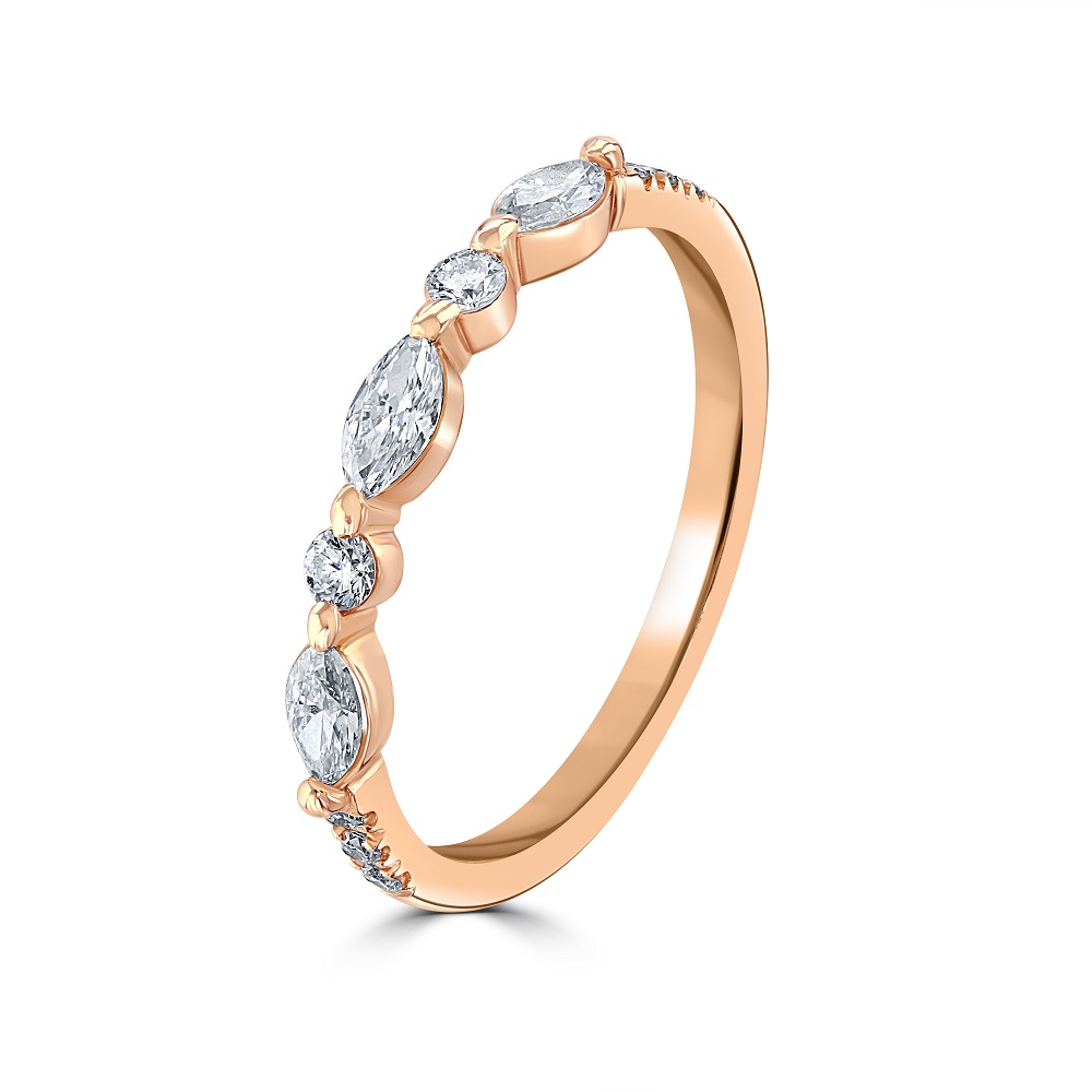 A pretty 18ct rose gold eternity ring set with sparkling round brilliant and marquise cut diamonds. This beautiful ring could be worn either by itself or as part of a stacking set. Other variations are available, please contact the store for more details.