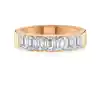 The warm, romantic hue of the 18ct rose gold beautifully complements the clear, geometric lines of the emerald cut diamonds, creating a harmonious balance of colour and form. This ring is not just a piece of jewellery; it's a testament to enduring love and the perfect way to mark significant moments and milestones.