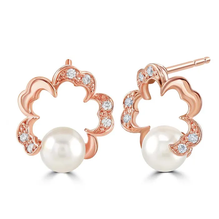 18ct Rose Gold Akoya Cultured Pearl and Diamond Earrings