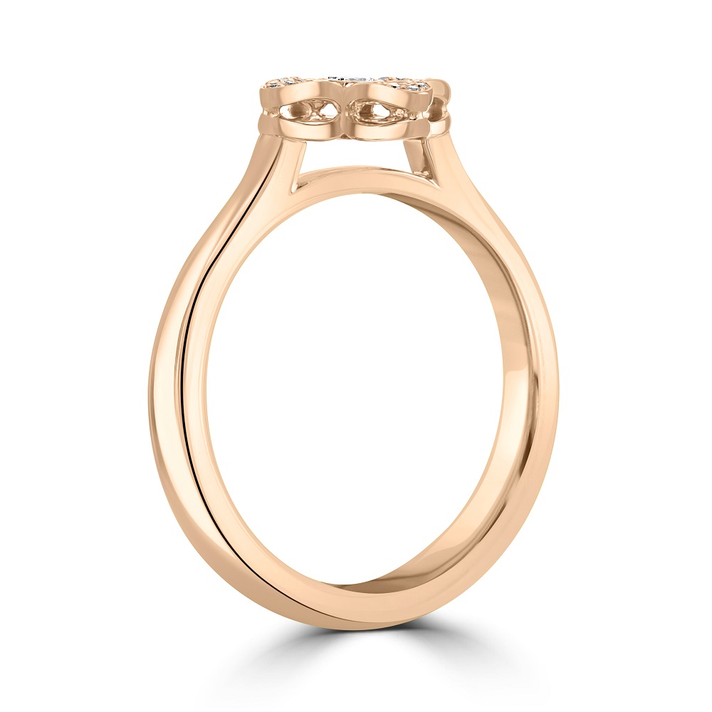 Embrace the elegance of our 18ct rose gold open flower style cluster ring. This exquisite piece showcases a central rubover set round brilliant cut diamond, surrounded by 32 smaller round brilliant cut diamonds grain set to form four radiant petals. Perfect for any occasion, this rose gold flower cluster ring combines timeless beauty with modern sophistication. Add a touch of luxury to your jewellery collection with this stunning diamond ring, designed to make a lasting impression.