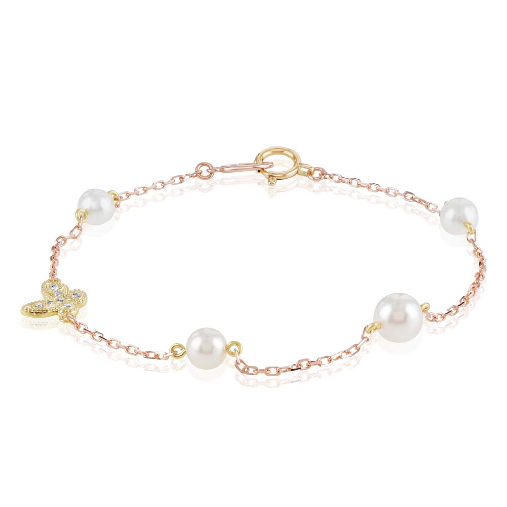 18ct Rose Gold Cultured Pearl and Butterfly Bracelet