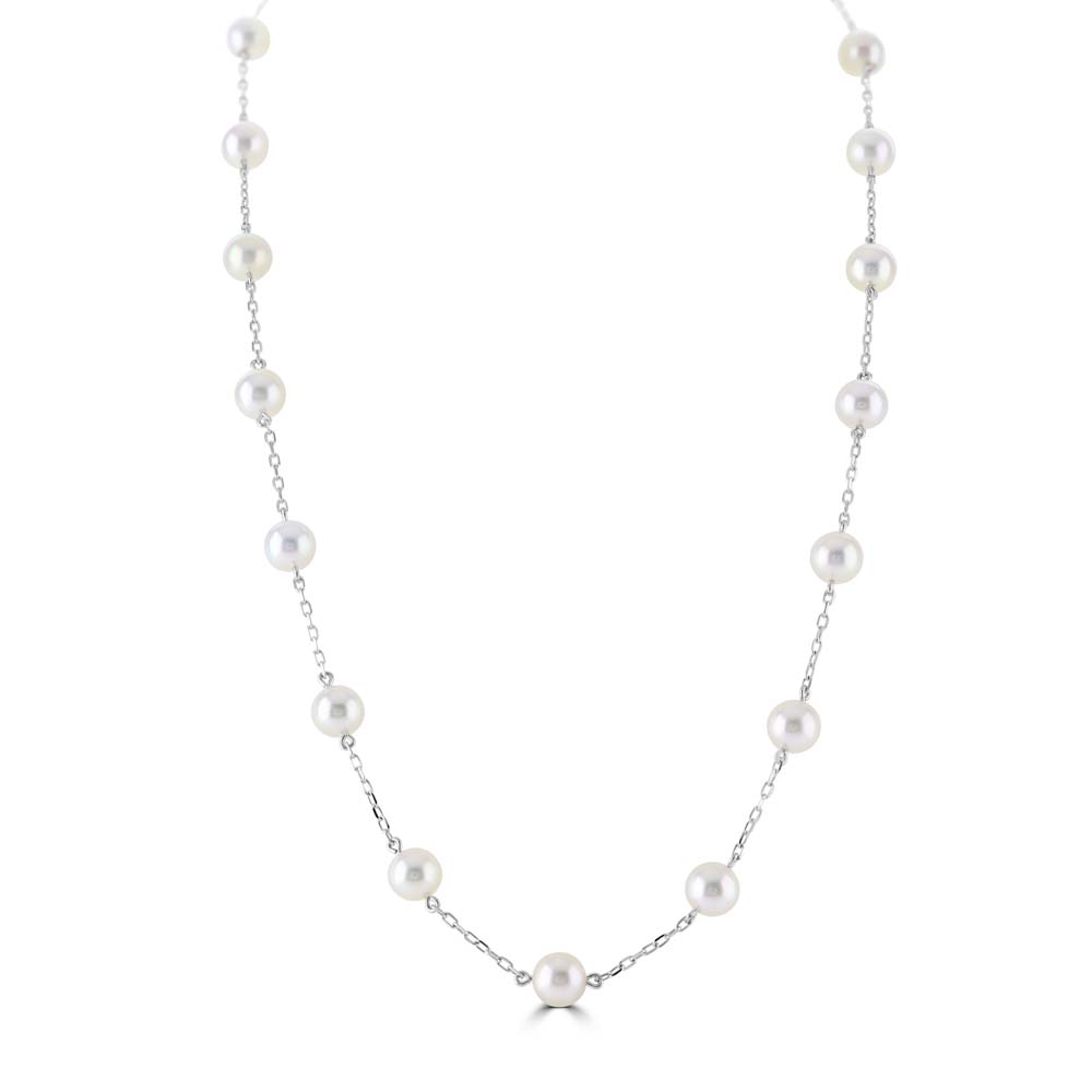 The quintessence of sophistication, an 18ct white gold cultured pearl necklace crafted by the esteemed Mikimoto. This exquisite piece features 18 impeccably round Akoya cultured pearls, evenly spaced along a delicate 18ct white gold chain, offering a stunning contrast and unparalleled elegance. Mikimoto, a name synonymous with the highest quality cultured pearls, presents a necklace that is not just an accessory but a reflection of the ocean's serene purity, the enigmatic beauty of creation, and the assurance of adorning the finest cultured pearls globally recognized. Wearing this Mikimoto pearl necklace transcends mere fashion—it's an experience of luxury, heritage, and a connection to the natural beauty of the seas. Embrace this embodiment of elegance and let the timeless grace of Mikimoto pearls elevate your every moment.