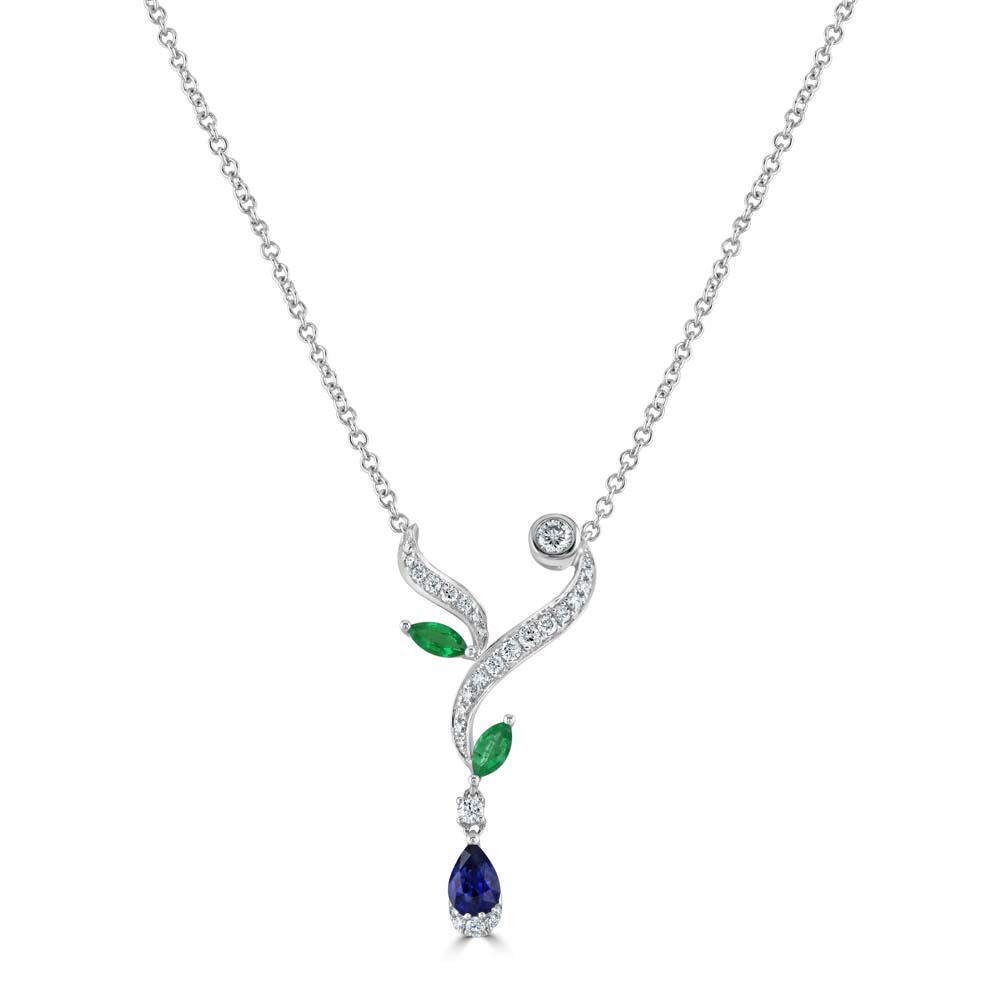 18ct White Gold Sapphire, Emerald and Diamond Pendant