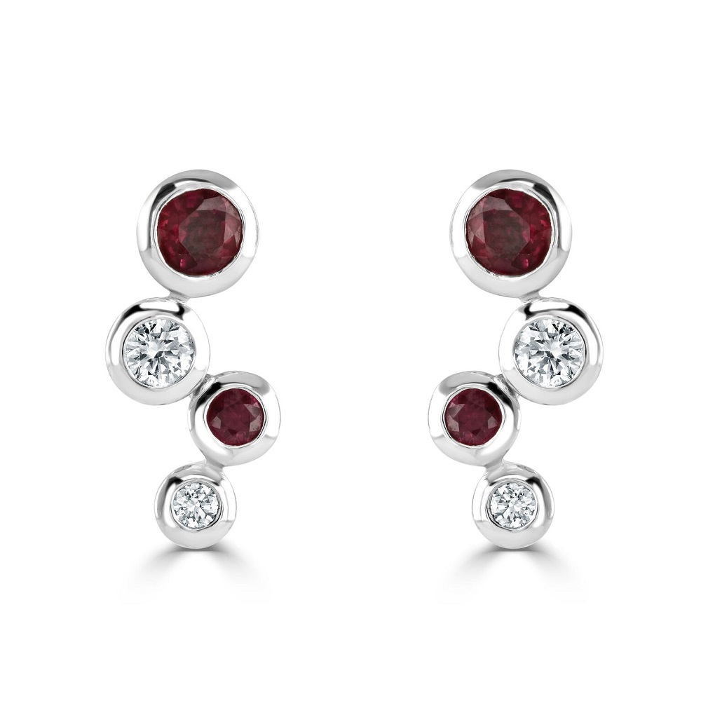 18ct White Gold Ruby and Diamond Bubble Earrings