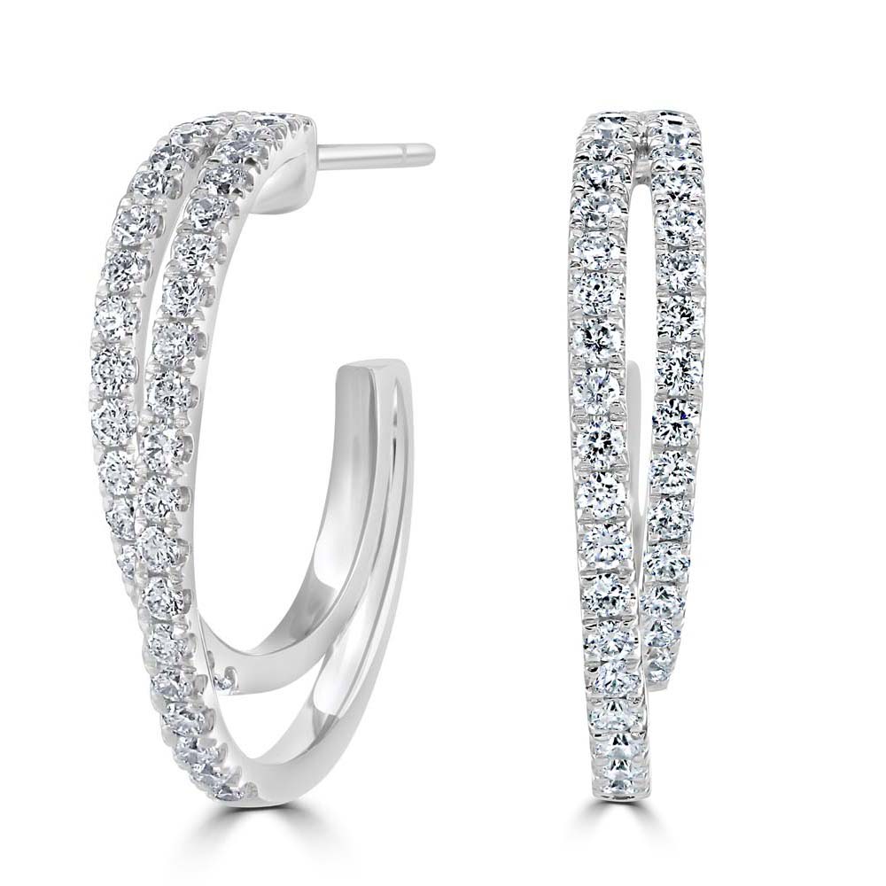 Step into a world of elegance with our 18ct white gold hoop earrings, a luxurious addition to any fine jewellery collection. These exquisite earrings boast two rows of sparkling round brilliant cut diamonds, totalling 0.57 carats, set to maximize their brilliance and shine. Designed with sleek post and butterfly fittings, these hoops offer both secure and comfortable wear. Crafted from premium 18ct white gold, the earrings provide a lustrous backdrop that enhances the natural radiance of the diamonds. Perfect for special occasions or adding a touch of glamour to your everyday ensemble, these double-row diamond hoop earrings are a timeless investment that exudes sophistication and style.
