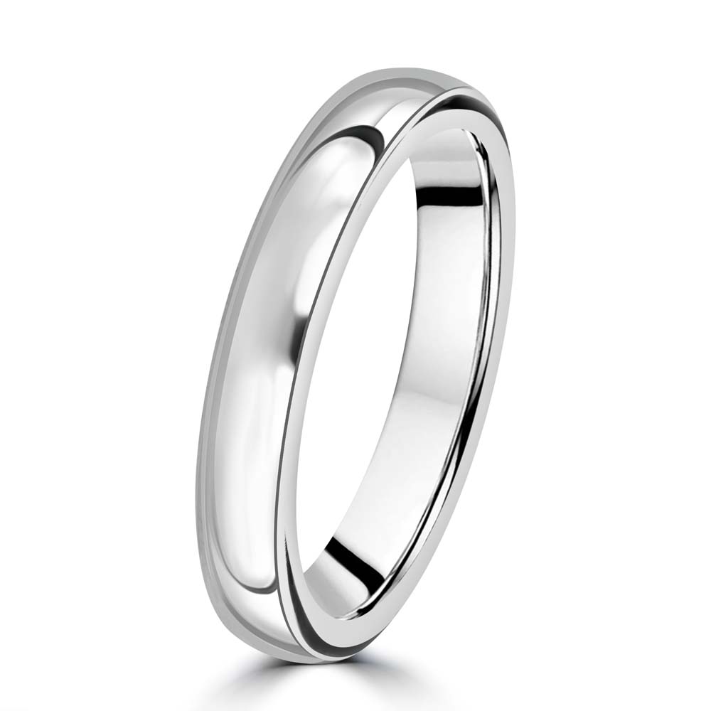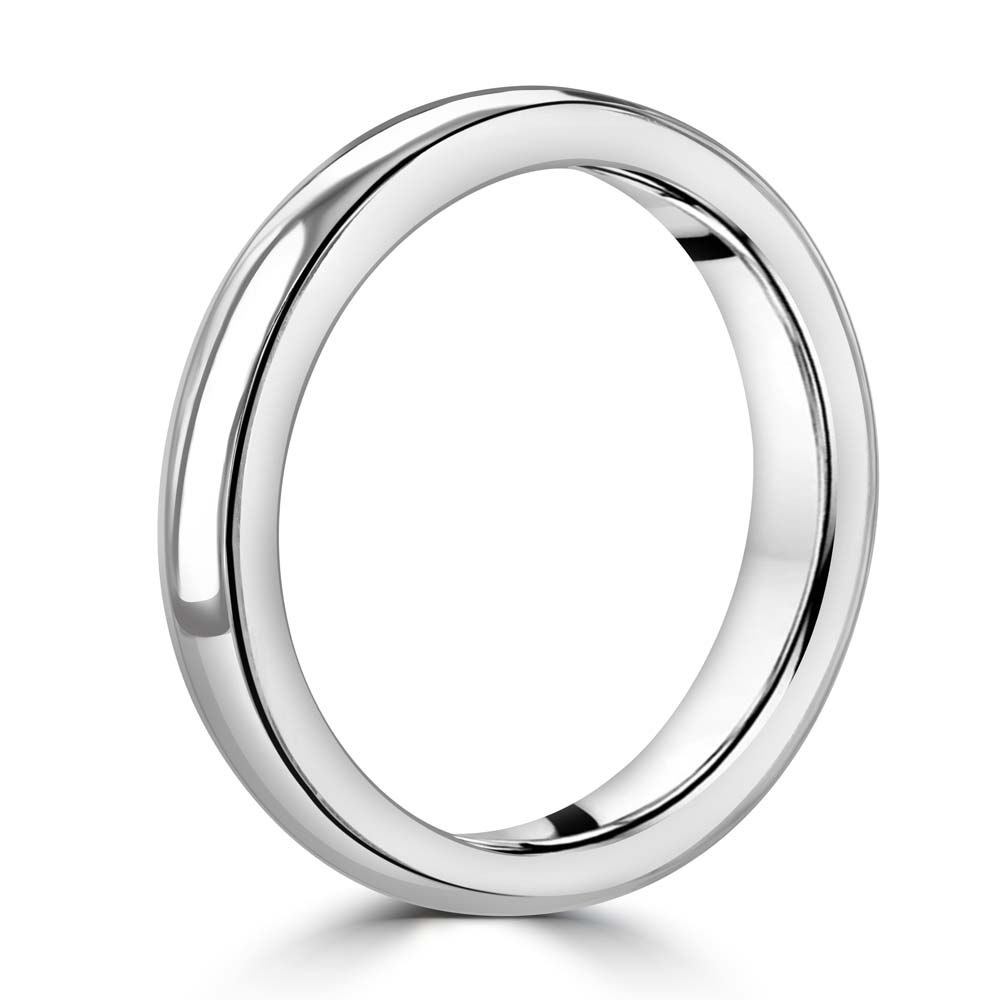 Discover the refined elegance of our 18ct white gold 3.5mm flat sided 'D' shaped wedding ring, a perfect symbol of enduring love and commitment. This exquisite ring features a high dome top, offering a sleek and contemporary look while maintaining the timeless appeal of classic wedding bands. Crafted from luxurious 18ct white gold, this wedding ring exudes a cool and sophisticated charm, creating a piece that will be cherished for a lifetime. The 3.5mm width provides a noticeable yet elegant presence on the finger, ideal for both everyday wear and special occasions. The softened comfort fit lining ensures maximum comfort, making it easy to wear throughout the day.