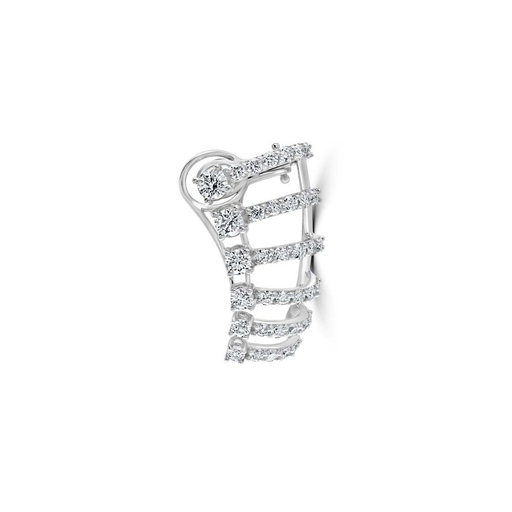 Make a bold statement with this luxurious 18ct white gold single ear cuff, designed with six graduated rows of claw-set round brilliant-cut diamonds for a striking, layered effect. Featuring 37 diamonds in total, this piece offers exceptional sparkle and modern elegance. With a total diamond weight of 1.09ct, graded G colour / SI clarity, and secured with a post and clip fitting, it combines comfort with high-end craftsmanship. Perfect for those who love contemporary luxury, this ear cuff adds instant glamour and individuality to any lookâideal for special occasions or as a standout everyday piece.