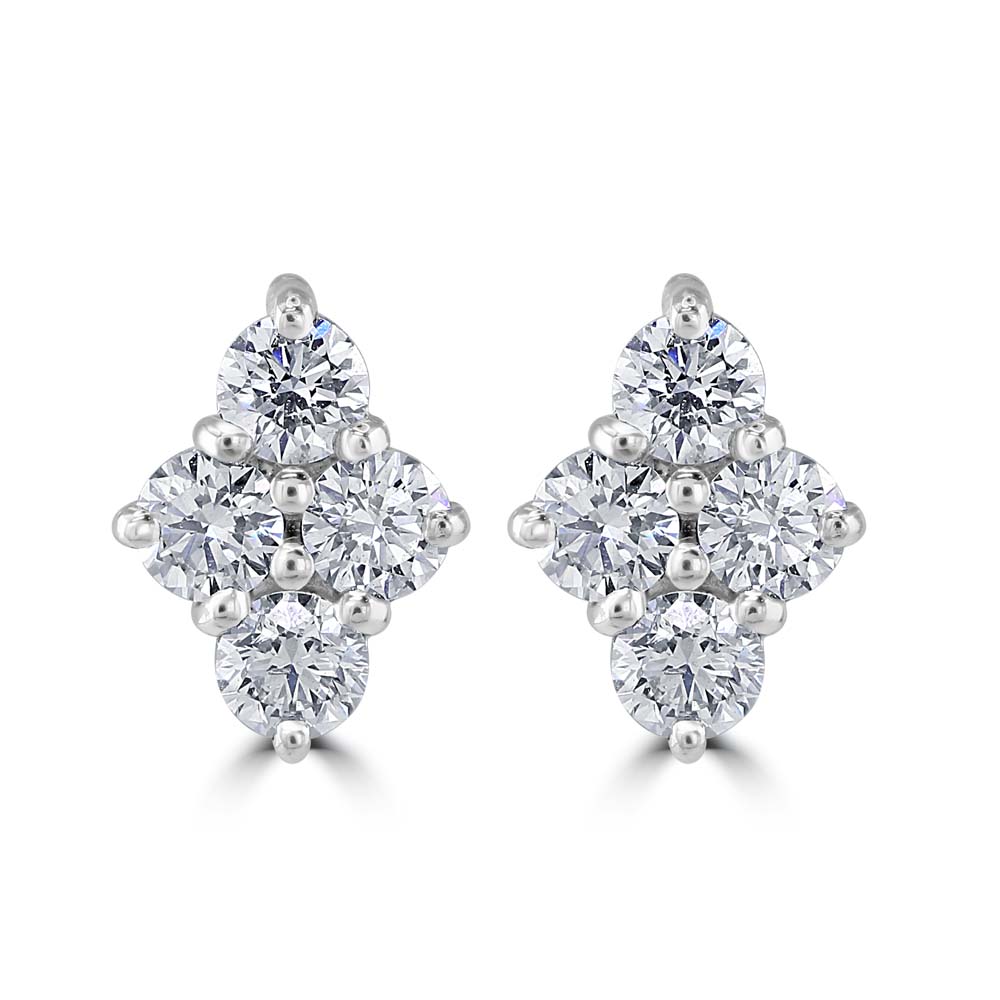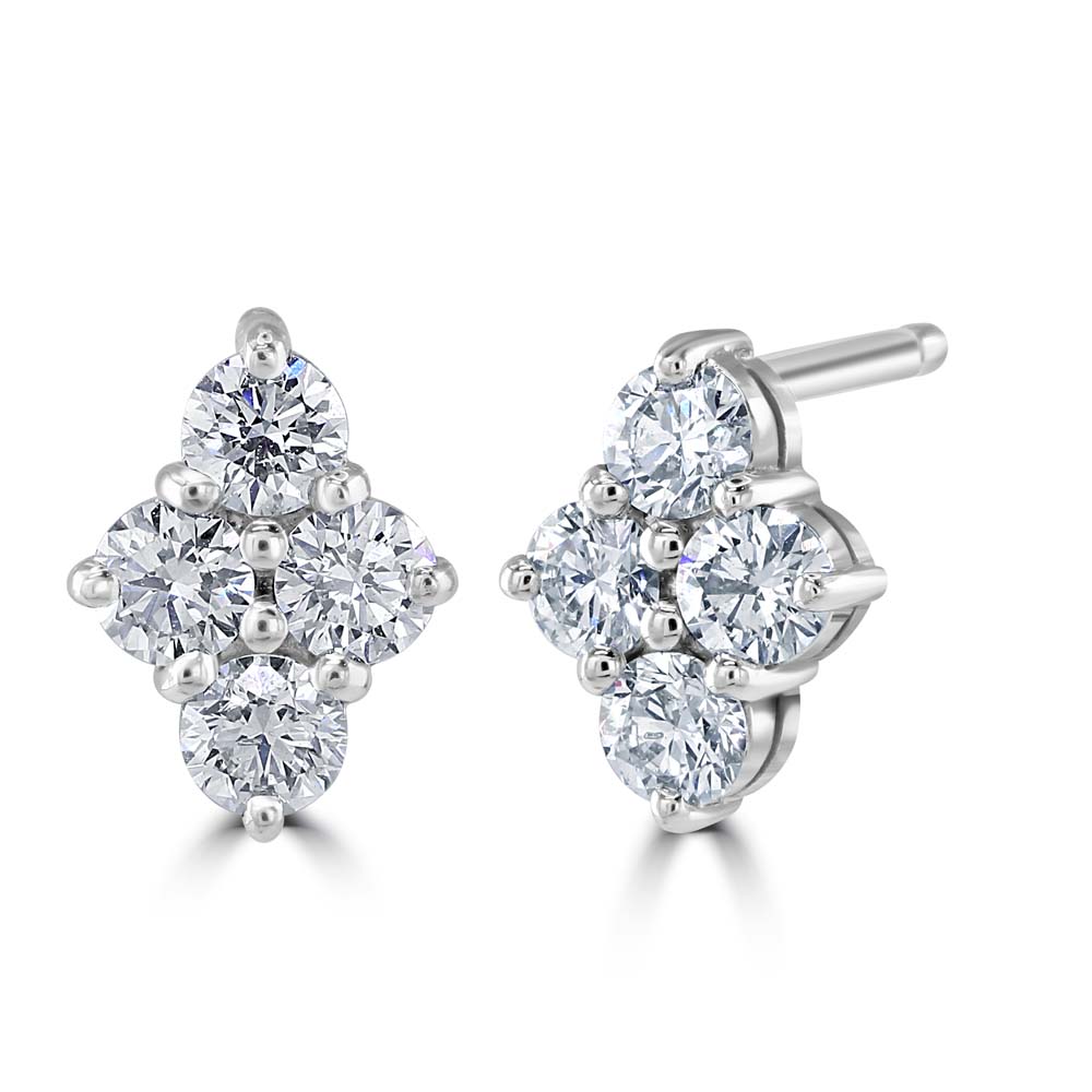 Discover the modern elegance of our 18ct white gold drop stud earrings, a striking addition to any sophisticated jewellery collection. Each earring is artfully designed with four round brilliant-cut diamonds, expertly claw-set in an eye-catching rhombus shape that showcases the gems' dazzling brilliance and impeccable craftsmanship. The diamonds, with a total weight of 0.76 carats, are arranged to capture and reflect light from every angle, creating a stunning sparkle that enhances any ensemble. Crafted in lustrous 18ct white gold, these earrings combine the timeless appeal of classic diamonds with a contemporary geometric design, making them perfect for both formal occasions and everyday wear. Featuring secure post and butterfly fittings, these earrings ensure a comfortable and safe fit, making them ideal for day-to-night transitions. Whether you're looking for a special gift or adding to your own collection, these drop stud earrings offer a unique blend of luxury, style, and sophistication that is sure to impress.