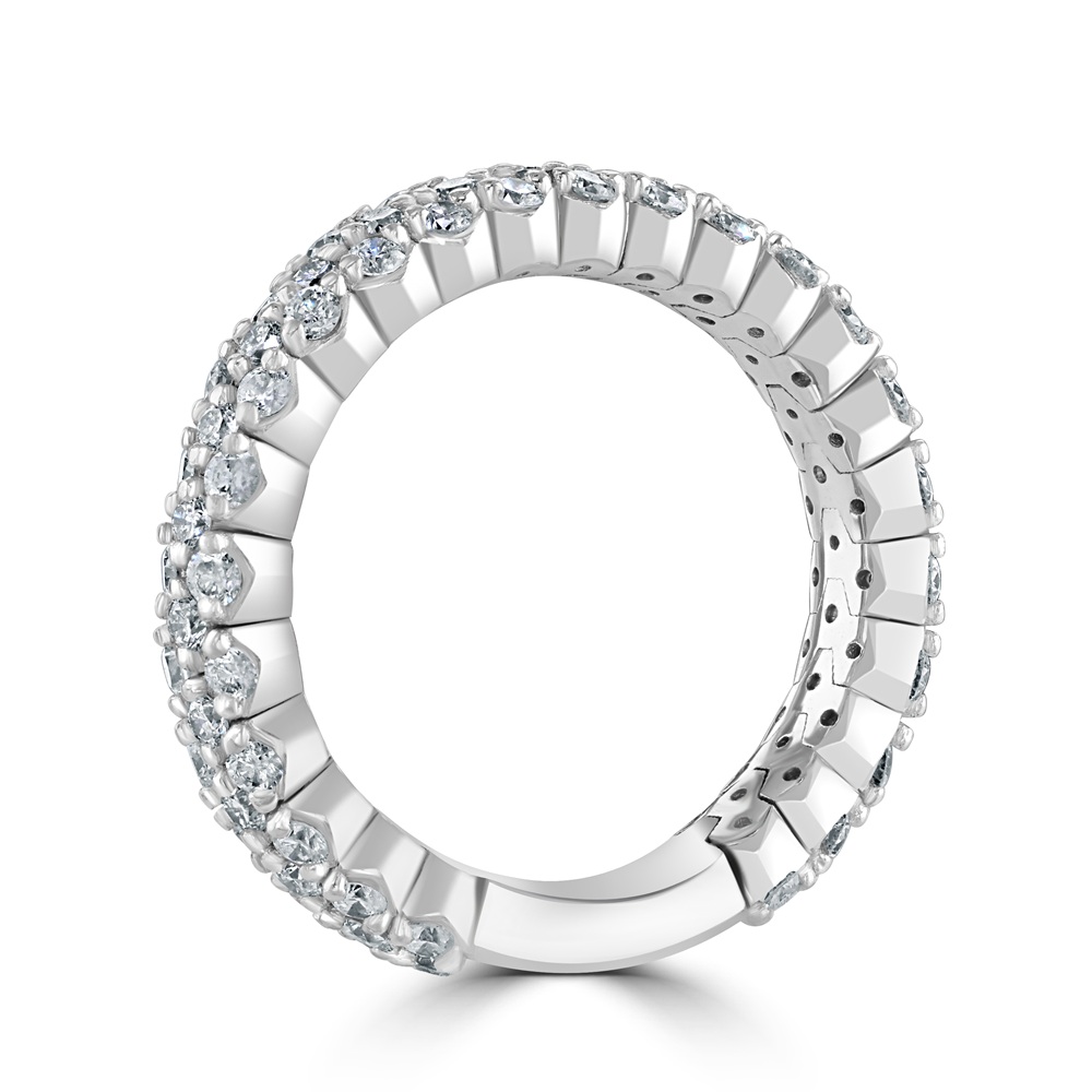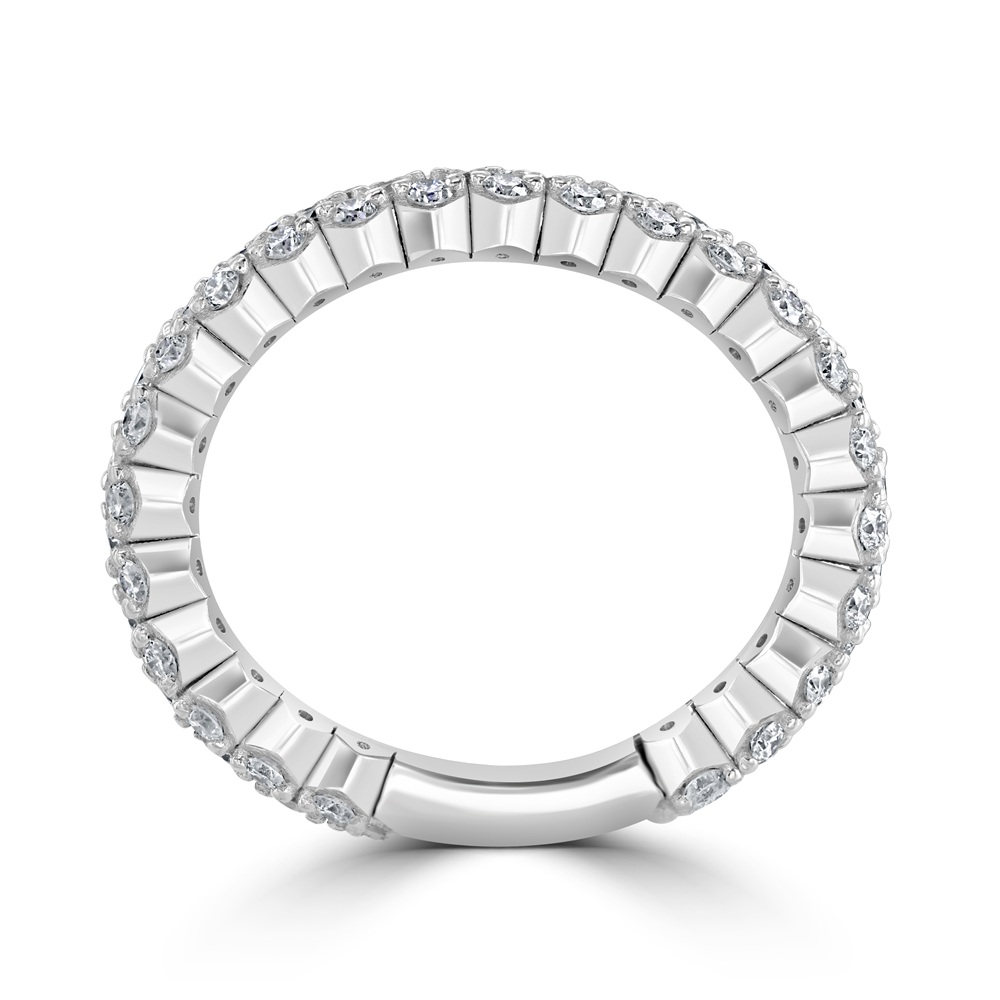 Immerse yourself in timeless luxury with this 18ct white gold eternity ring, exquisitely designed with 72 round brilliant cut diamonds claw-set across three elegant rows. With a total diamond weight of 1.01ct, each stone is meticulously selected for its G colour and SI clarity, offering exceptional sparkle and refined brilliance. The ring’s slightly flexible design ensures a comfortable fit while maintaining its structural integrity, making it ideal for everyday elegance or special occasions. The triple-row setting creates a dazzling display of light, symbolising eternal love and commitment. Perfect as a diamond anniversary ring, a luxury stacking piece, or a statement band, this eternity ring is a celebration of craftsmanship, sophistication, and enduring beauty.