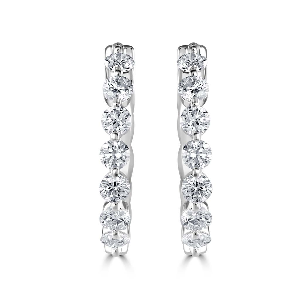 18ct white gold round hinged hoop earrings 2 claw set with 7 round brilliant cut diamonds Total diamond weight: 0.61ct